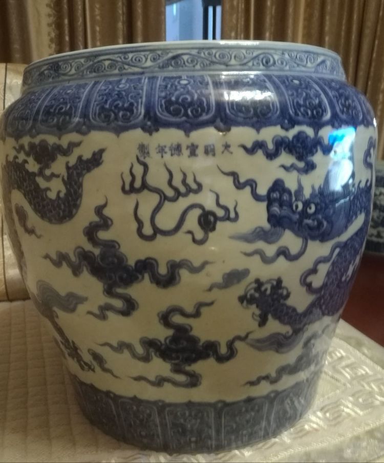 十大镇馆之宝一,“大明宣德年制”青花云龙纹大轴缸(高68Cm)