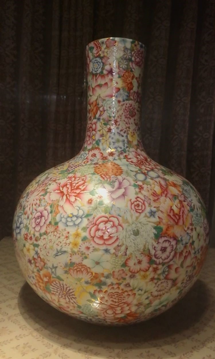 “十大镇馆之宝之一”,乾隆粉彩万花不露地天球瓶(h49Cm价值2.6亿元)