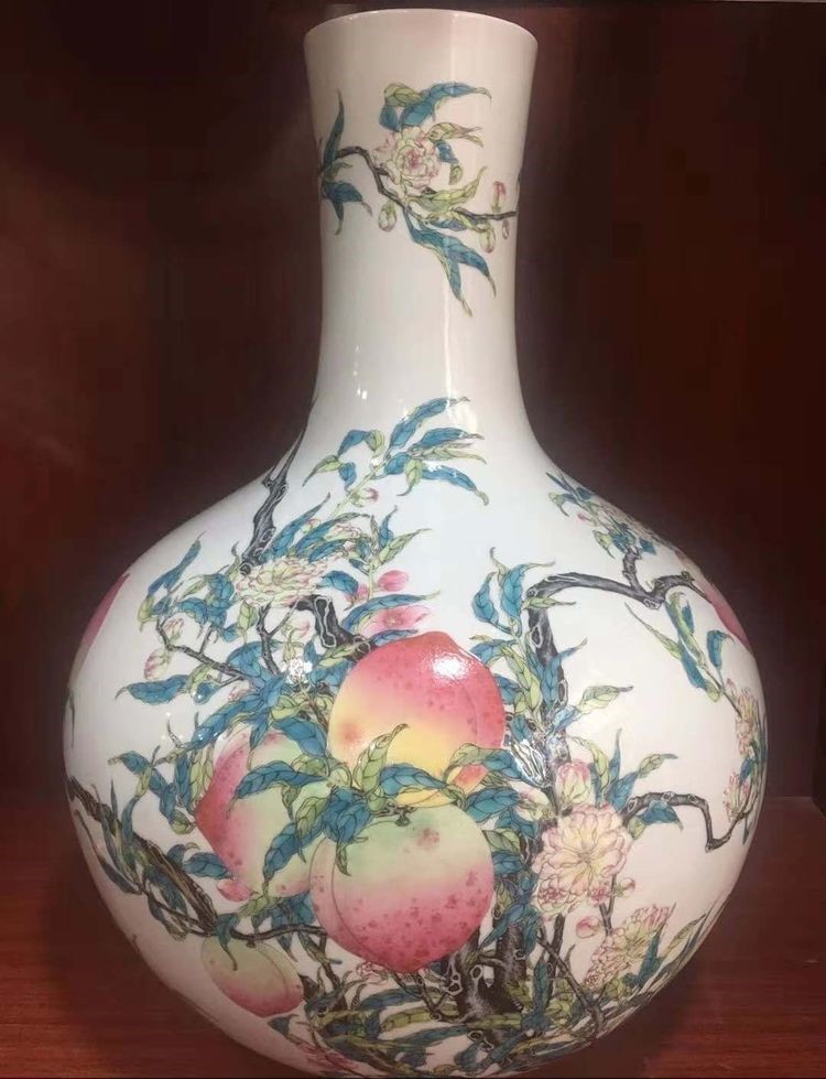 “十大镇馆之宝之一”,大清乾隆粉彩九桃瓶”。(价值2.2亿元)