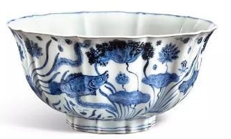 “十大镇馆之宝之一”,大明宣德青花魚藻十棱碗,⊕19Cm(价值1.7亿元)