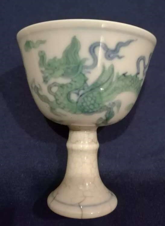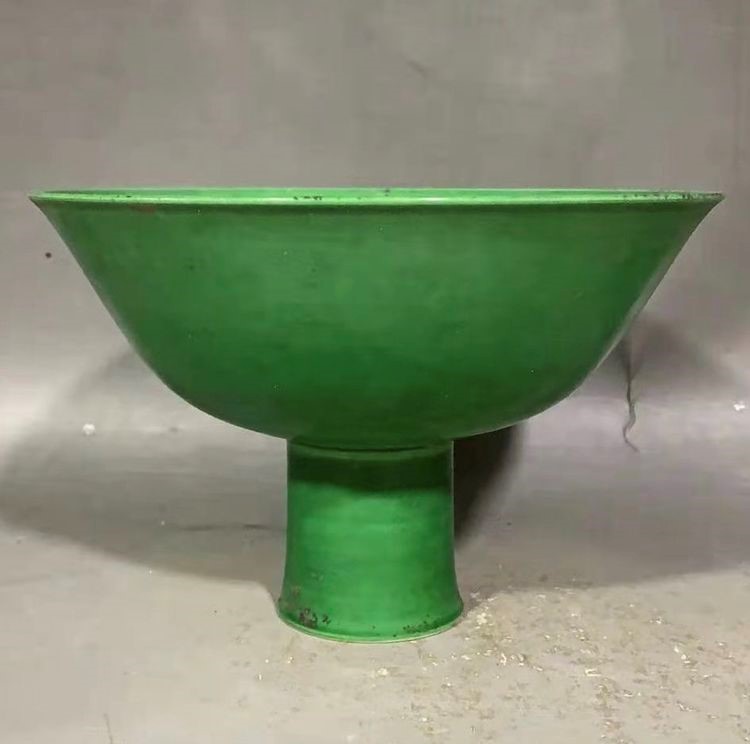 明:成化绿釉高足碗(官窑)