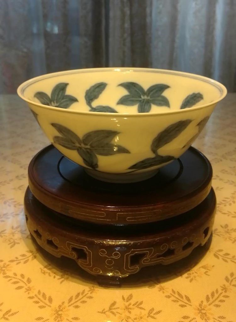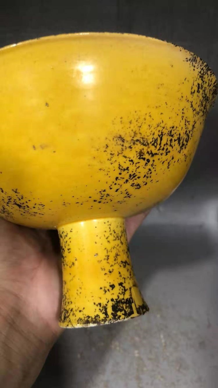 明:成化鸡油黄高足碗