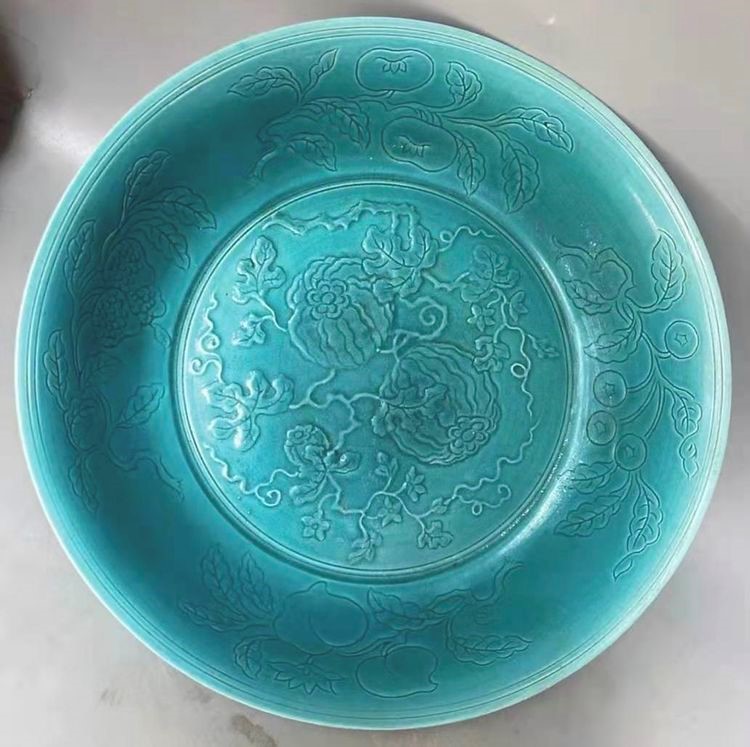 瓷器收藏里有一个品种极为另类,又极为少见,那就是孔雀绿,又称孔雀蓝。孔雀蓝最早是瓷器釉色之一,孔雀蓝釉又称“法蓝”,是以铜元素为着色剂烧制后呈现亮蓝色调的低温彩釉,