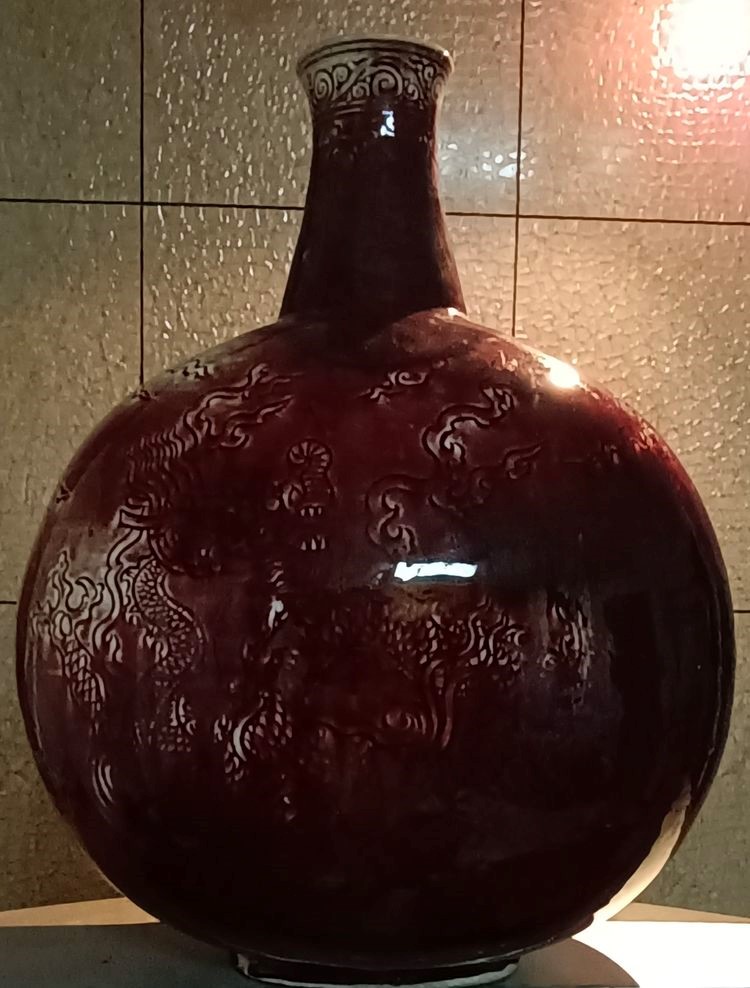 明:永乐红釉暗刻云龙背壶(高52公分,永乐典型器)
