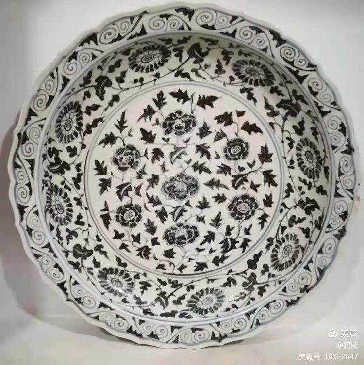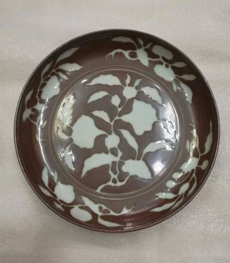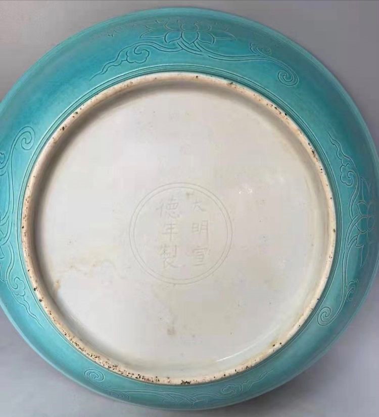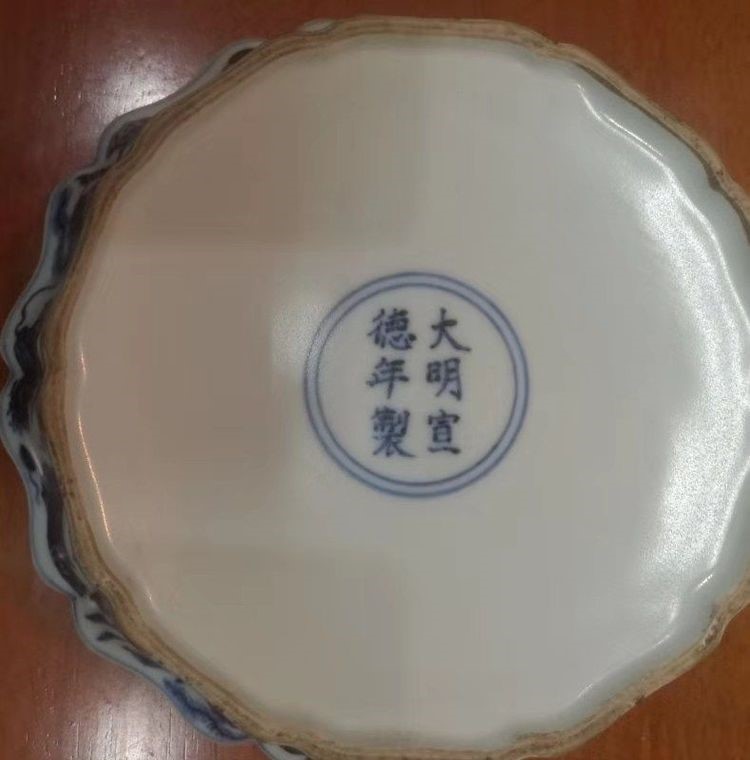 宣德紫金翻留白牡丹窝口盘("大明宣德年制“青花外沿官窑款)