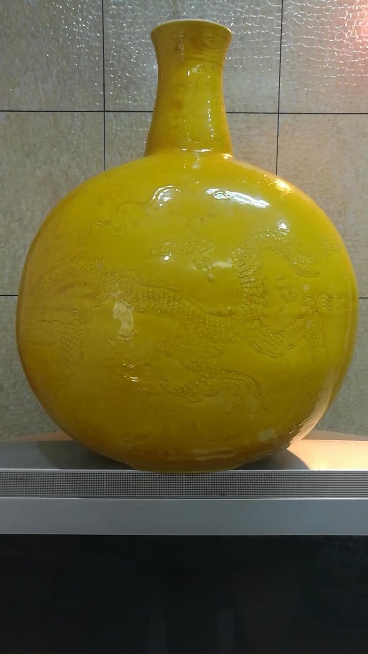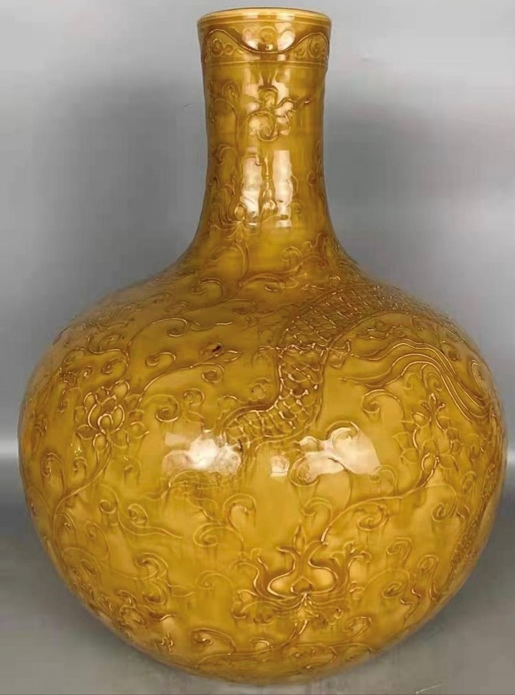 ”十大镇馆之宝之一”大明永乐黄地暗刻龙背壶(h46Cm)孤品(价值2.3亿元)