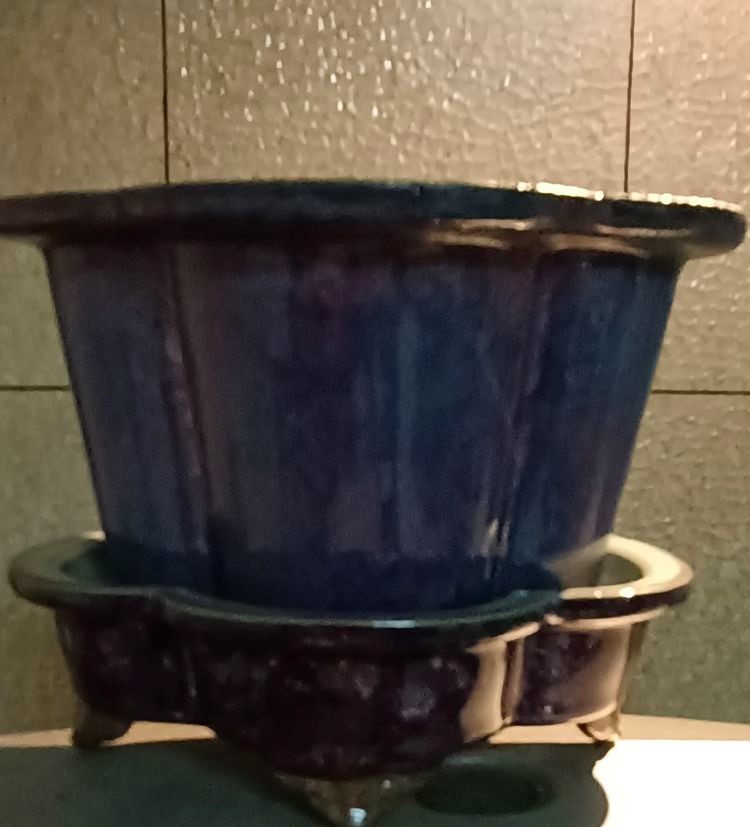 宋:钧窑紫罗兰海棠口养花套盆