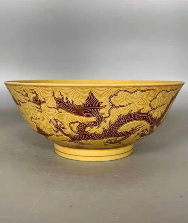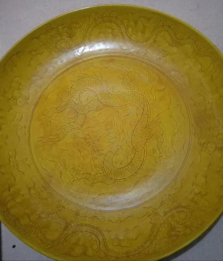 明*弘治娇黄暗刻龙大盆(官窑)〇48Cm(价值2600万)