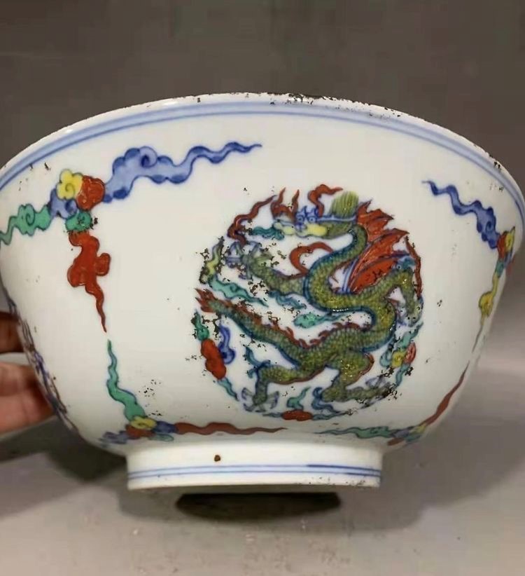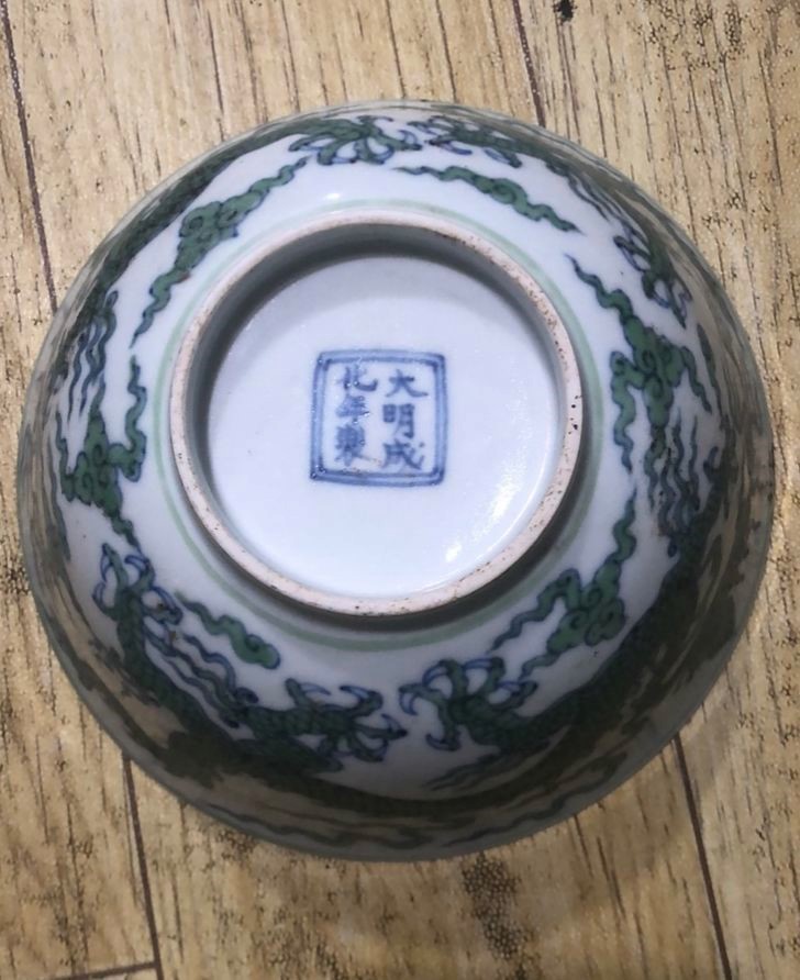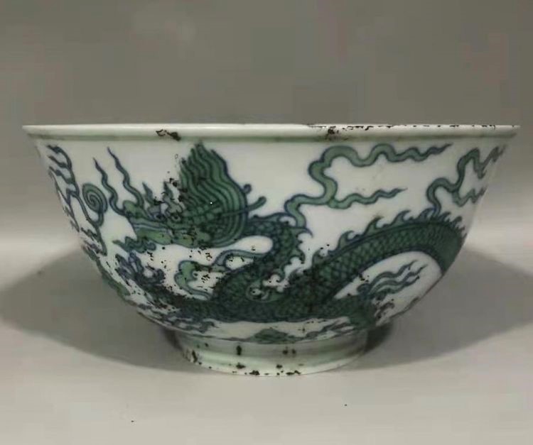 明:成化鬥彩填绿龙宫碗(官窑)
