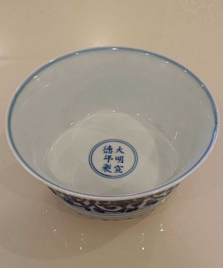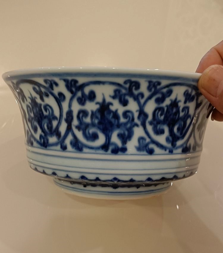 明:成化青花缠枝夔龙宫碗(御制)