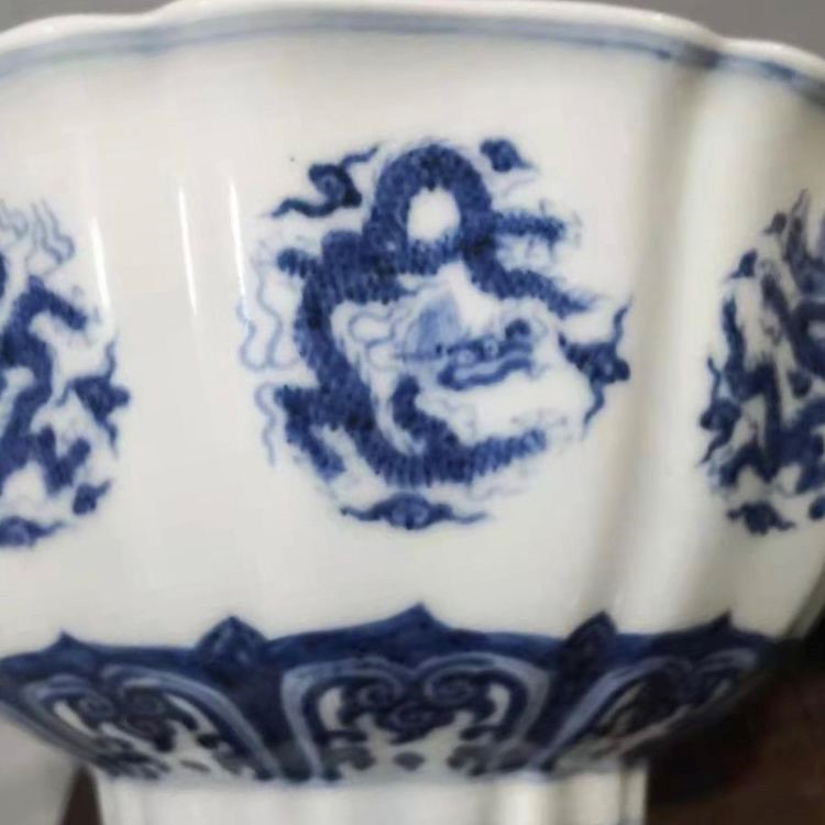明:宣德“青花十棱团龙葵口宫碗”