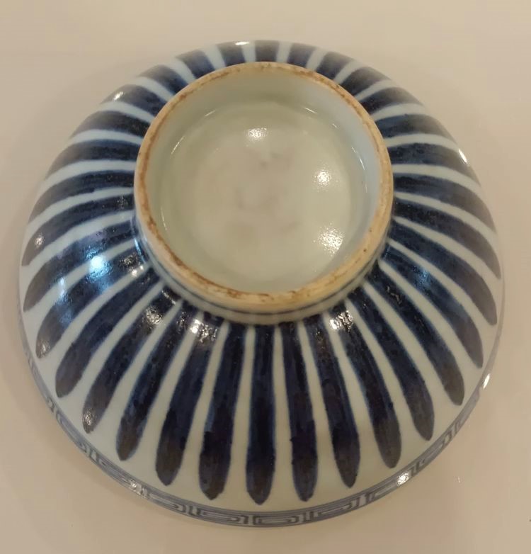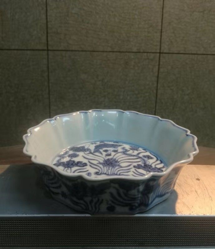 明*宣德青花鱼藻十棱盆,“直径18公分"(大明宣德年制”官窑款)