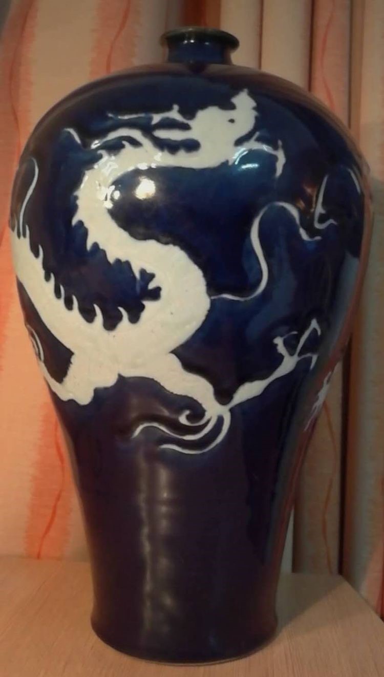 “十大镇馆之宝之一”,元*霁蓝釉梅瓶(h44.25Cm)(存世量共四件:北京颐和园博物馆藏一个、杨州博物馆藏一个、法国吉美博物馆藏一只。此为第四只。现市场上所见都为仿品)(价值5、5亿元)