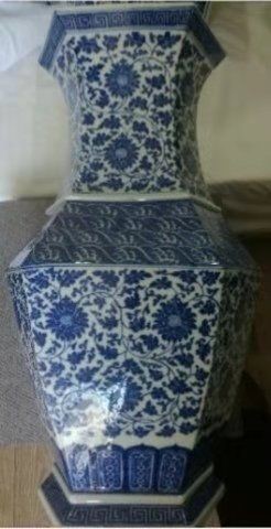 乾隆青花六方高颈瓶(官窑)