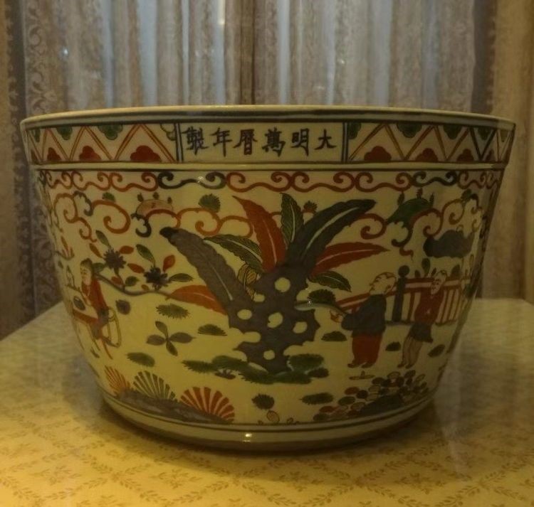 明*万历五彩婴戏图直壁大缸(口径:59公分)