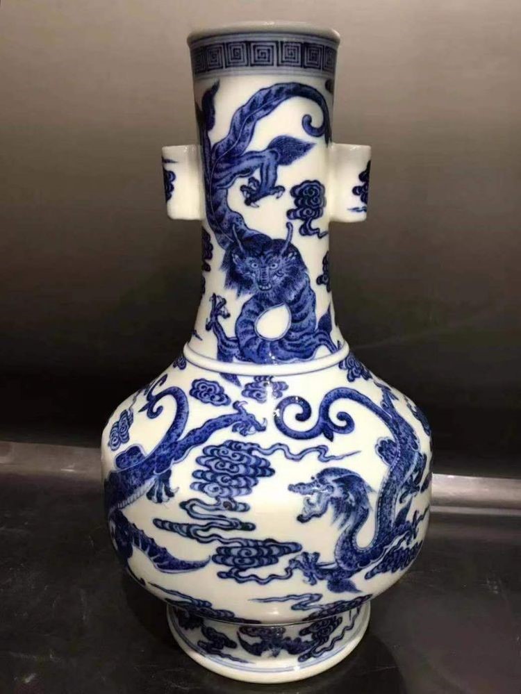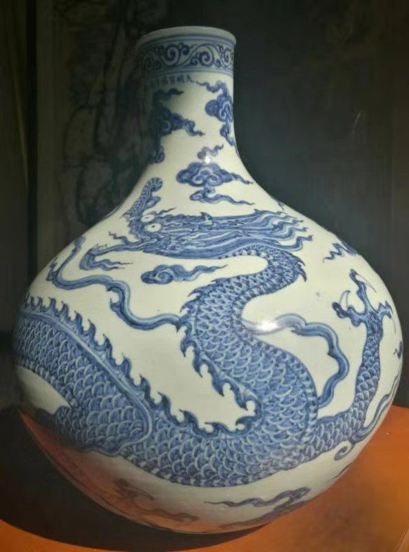 宣德青花云龙天球瓶(矮颈)存世"两件半”:辽博藏一件,加此件!“半件”多年前于美国苏富拍卖,颈部款式部分残缺