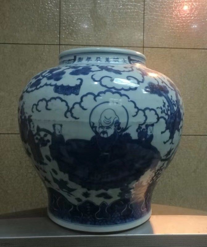 明*万历人物青花罐("大明万历年制“官款)