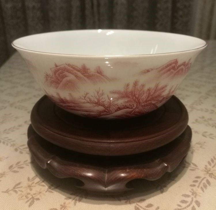 清*乾隆胭脂红山水图案宫碗(官窑O14Cm)价值2600万。