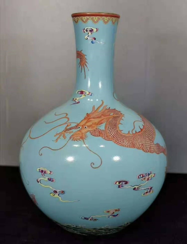 清*乾隆粉彩苍龙教子天球瓶,官窑(h49Cm)价值9000万元