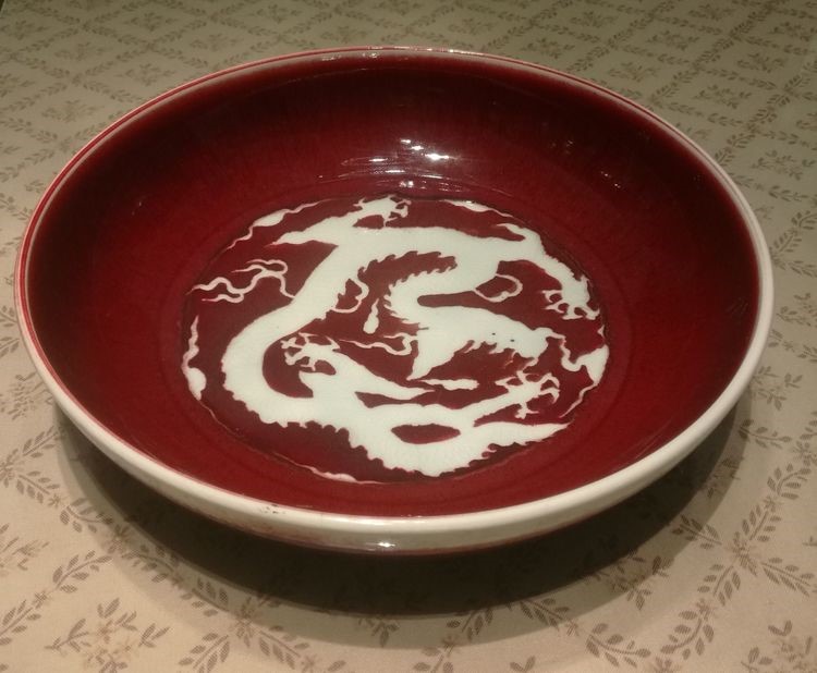 明*永乐红釉留白龙窝口盆(〇30.2Cm)(孤品)价值3500万