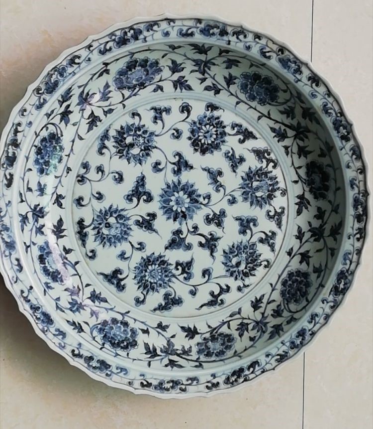明*洪武青花菊花纹大盘〇48Cm(官窑)价值1200万元