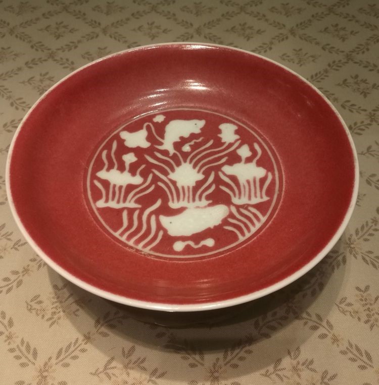 明*宣德红釉留白鱼藻盆("大明宣德年制“六字楷书官款)价值1000万元