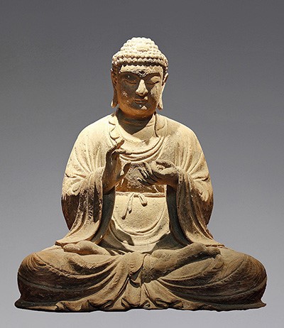 《释迦摩尼像》 晚唐 楠木独雕 (高110cm)