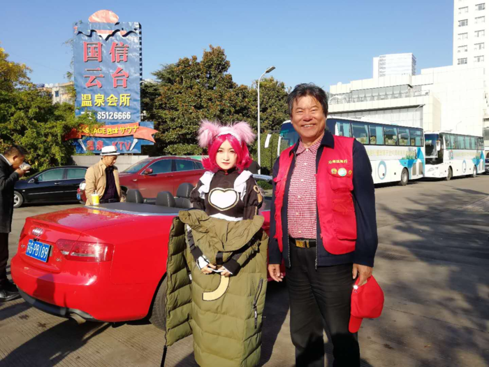在连云港国信云台大酒店出发前巧遇婚庆,预兆喜事连连,李复圣会长与伴娘妹妹在老式劳斯莱斯前合照