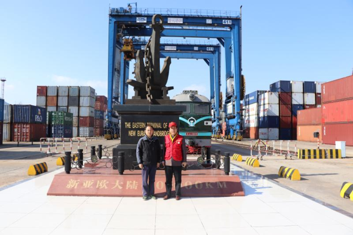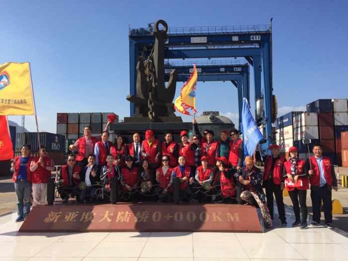 来到连云港货运码头,团员们被眼前成排的集装箱、高耸云端的吊车所震惊;也为极具设计感和象征意义的新亚欧大陆桥雕塑和内燃机车组合而赞叹不已,纷纷举起手机,摆出造型,拍照纪念。